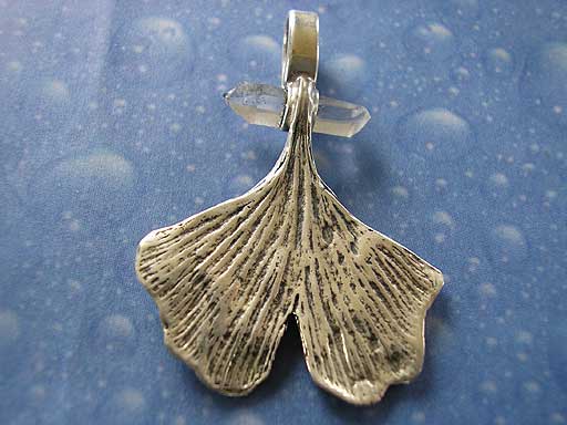 Ginkgo Blatt mit Bergkristall Anhänger Design